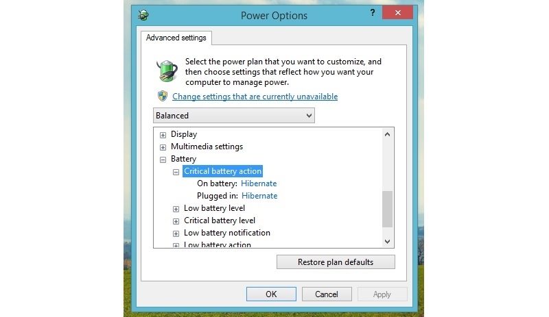 Bước 3: Tại cửa sổ mới hiển thị, bạn chọn chế độ Hibemate (tự động ngủ đông) khi pin còn ở mức 5% hoặc 7%.