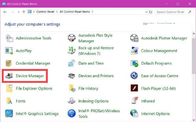 Bước 6: Hãy tìm kiếm Device Manager và click vào để truy cập vào nó.