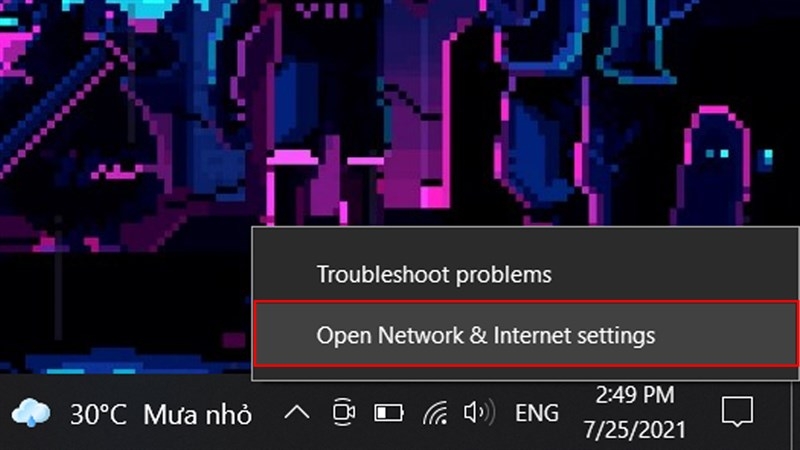 Bước 1: Nhấp chuột phải vào biểu tượng WiFi trên taskbar, chọn Open Network & Internet Settings.