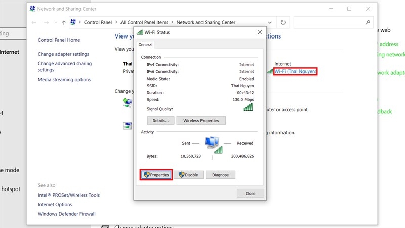 Bước 3: Chọn tên WiFi, sau đó nhấp Properties.