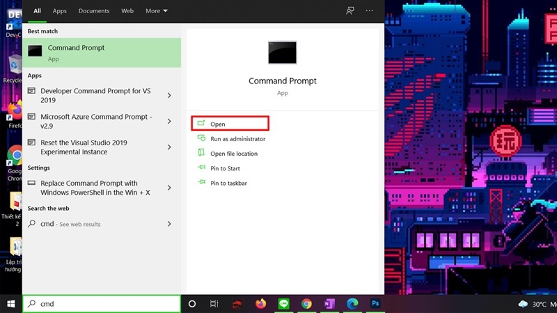 Bước 1: Mở Command Prompt với quyền Administrator bằng cách tìm "CMD" và chạy as administrator.
