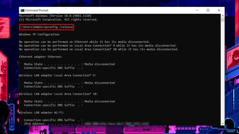 Bước 2: Gõ lệnh ipconfig /release và nhấn Enter để giải phóng IP cũ.