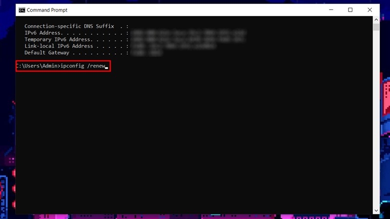 Bước 3: Gõ ipconfig /renew và Enter để cấp IP mới.
