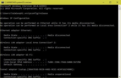 Bước 2: Thực hiện lần lượt các lệnh sau (mỗi lệnh nhấn Enter một lần):
