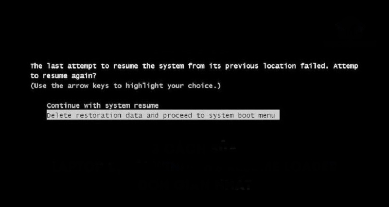 - Bước 1: Trên màn hình lỗi, sử dụng phím mũi tên ↑↓ để chọn "Continue with system resume".