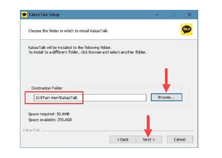Bước 3: Để thay đổi vị trí cài đặt, bạn hãy nhấn vào tùy chọn Browse và chọn lại đường dẫn. Nếu bạn không muốn thay đổi, hãy giữ nguyên và chọn Next.