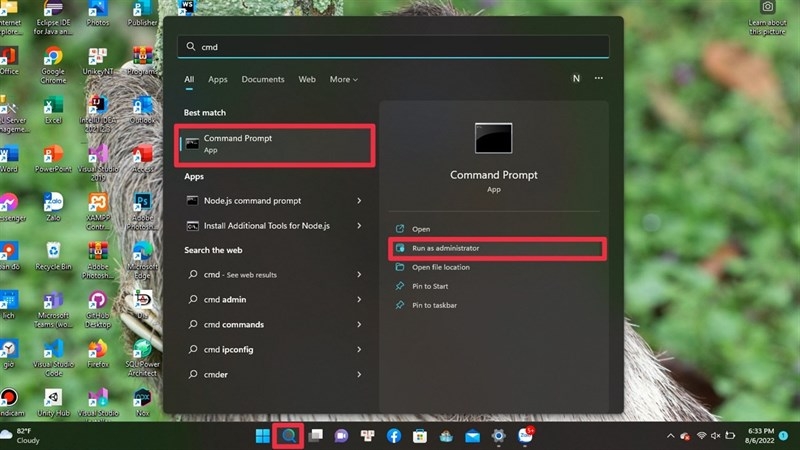 - Tìm kiếm Command Prompt hoặc PowerShell trên thanh tìm kiếm Windows.