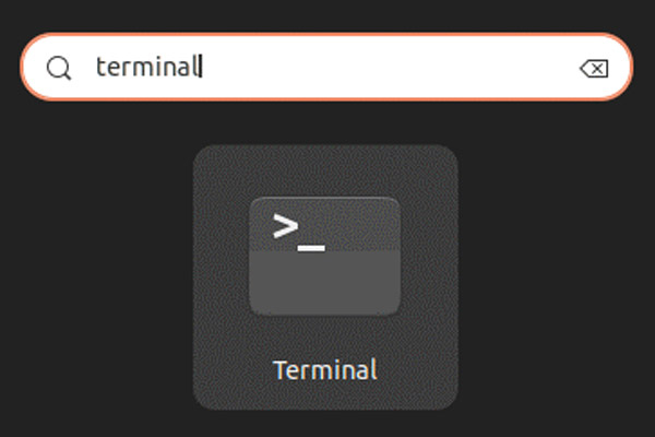 - Nhấp vào nút Activities ở góc trên bên trái, gõ Terminal và chọn ứng dụng.