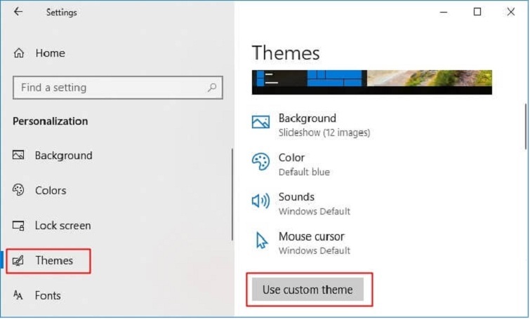 Sau khi bạn đã truy cập vào mục "Themes" trong phần Settings, hãy nhấn vào nút "Use custom theme" để có thể sử dụng một theme tuỳ chỉnh.