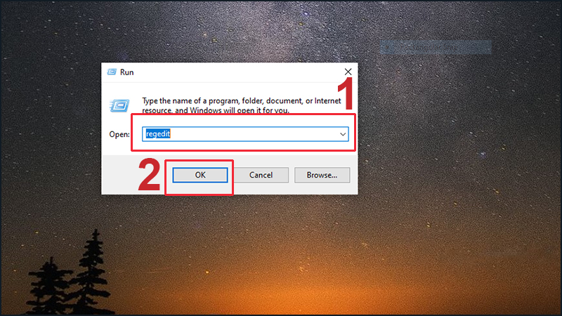Bước 1: Nhấn Windows + R, nhập "regedit" và Enter để mở Registry Editor.