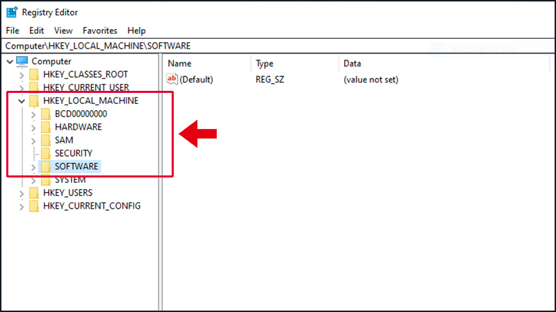 Bước 2: Điều hướng đến đường dẫn: HKEY_LOCAL_MACHINE\Software\Intel.