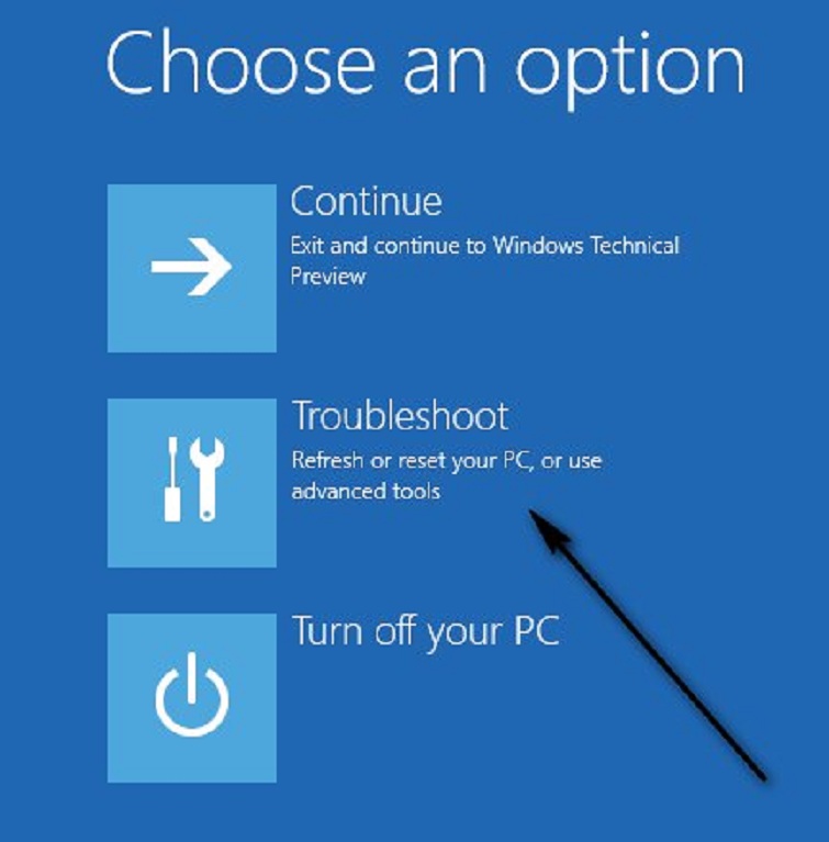 Bước 3: Khi giao diện Advanced Recovery Options hiển thị trên màn hình, hãy chọn vào mục Troubleshoot.