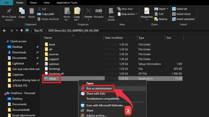 Bước 3: Chạy cài đặt: Mở ổ đĩa ảo, chạy file setup.exe với quyền Administrator. Giao diện cài đặt sẽ hiện ra, chọn ngôn ngữ và khu vực phù hợp.