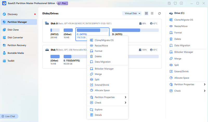 Nếu bạn đã áp dụng cách trên nhưng lỗi vẫn không được khắc phục. Vậy bạn hãy thử sử dụng phần mềm EaseUS. Với các thao tác được hướng dẫn chi tiết như sau: