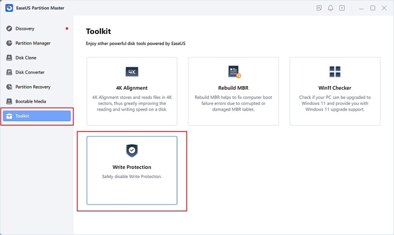 Bước 2: Vào "Toolkit" > Chọn "Write Protection".