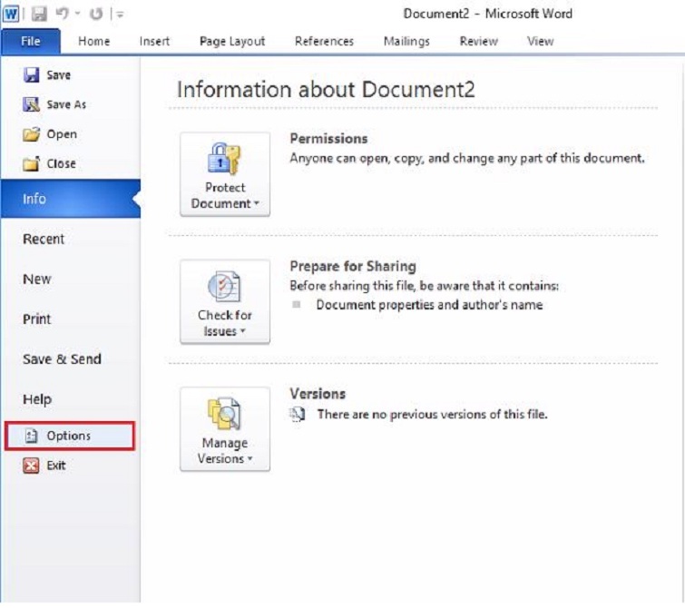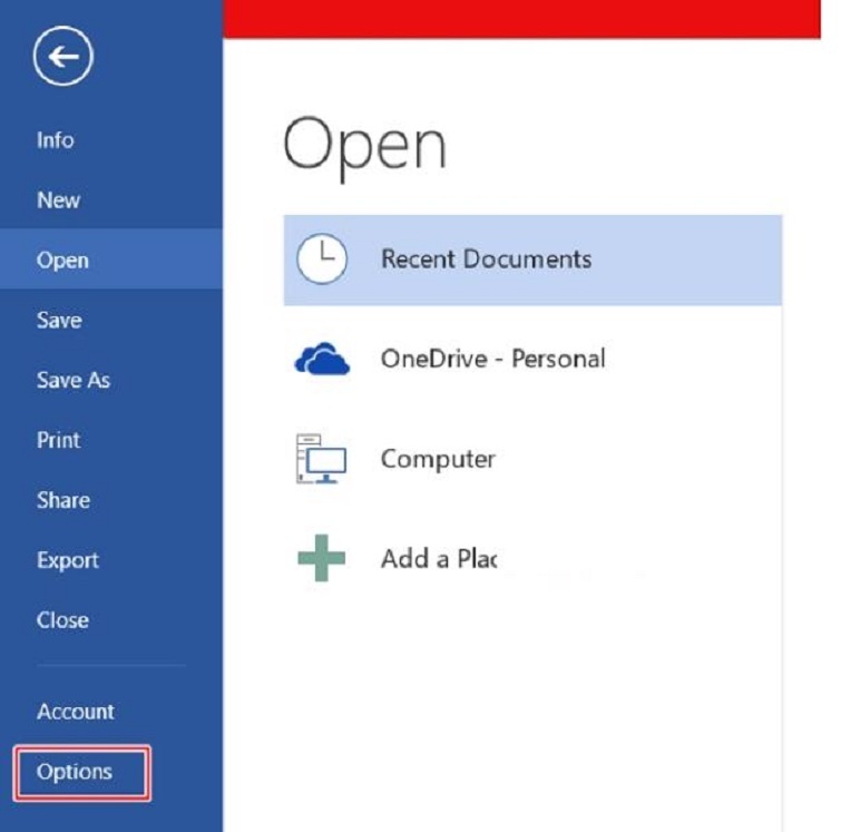 Bước 2: Chọn "Word Options" từ menu bên trái