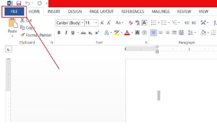 Bước 1: Truy cập tab "File" trên ribbon interface
