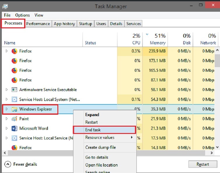 Cách 1: Khởi động lại Windows Explorer