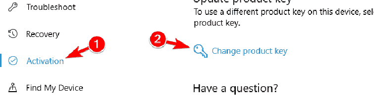 Bước 6: Sau đó, bạn nhấn vào Tab Activation trên bảng điều khiển ở phía bên trái và chọn Change product key.
