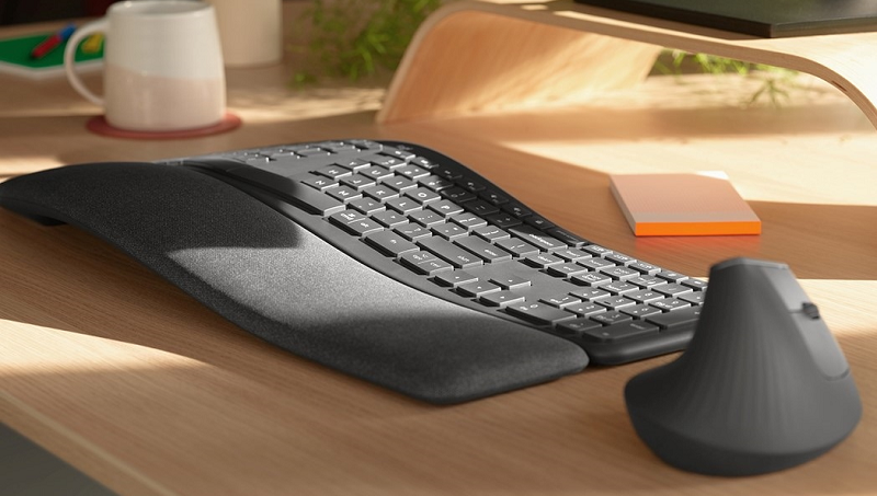 Logitech có nhiều loại bàn phím công thái học như Logitech Ergo K860, với kiểu dáng chia và hỗ trợ cổ tay.