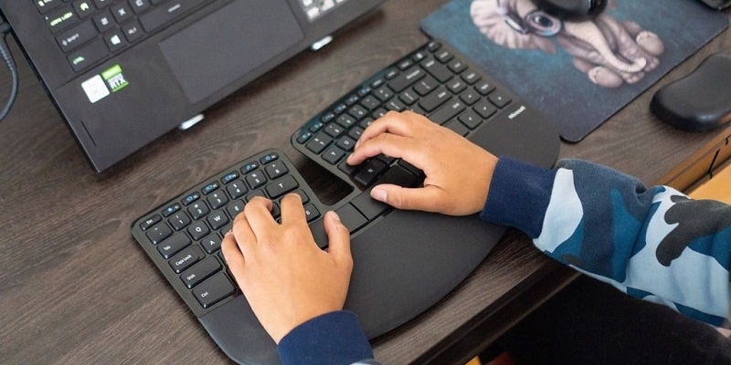Microsoft Ergonomic Keyboard là một lựa chọn phổ biến, với bàn phím chia và thiết kế công thái học giúp giảm căng thẳng.
