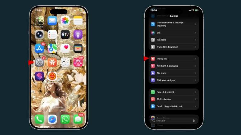 Truy cập mục Thông báo trong Cài đặt