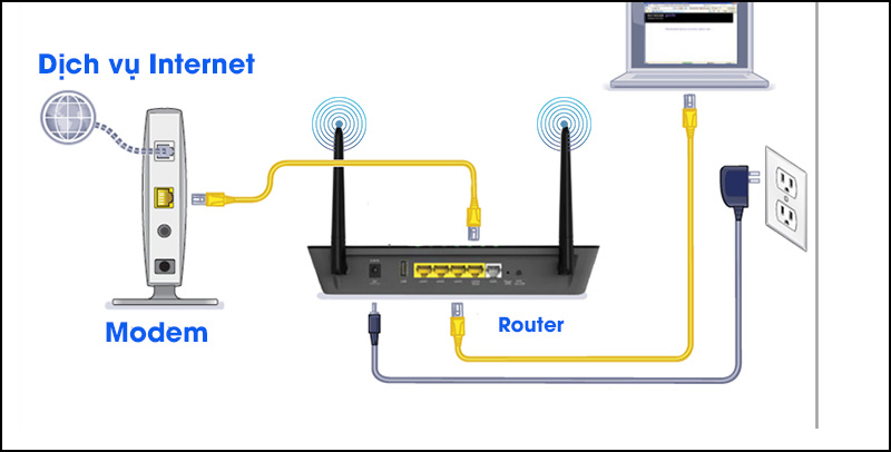 - Kết nối cáp Ethernet từ modem/router vào cổng mạng máy tính
