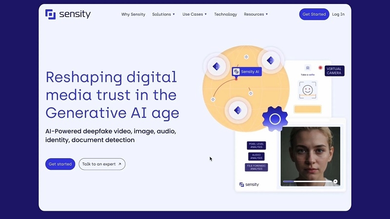 Sensity AI tập trung vào deepfake video lẫn hình ảnh, với công nghệ đa lớp đạt độ chính xác 98%. Được các tổ chức an ninh mạng tin dùng nhờ phân tích thời gian thực.
