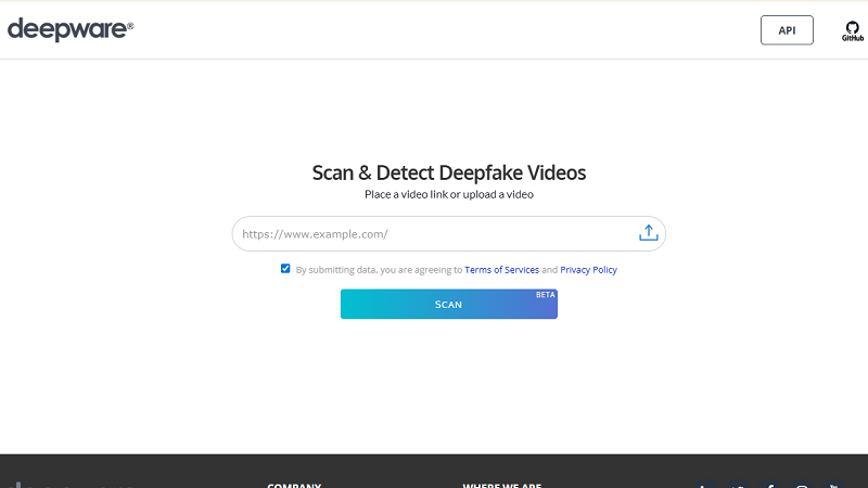 Deepware Scanner cung cấp phiên bản miễn phí lẫn trả phí, với giao diện đơn giản để quét deepfake. Tập trung vào phân tích video cá nhân.
