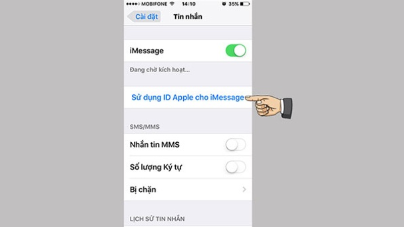 Tiếp tục nhấn vào dòng chữ "Sử dụng ID Apple cho iMessage"