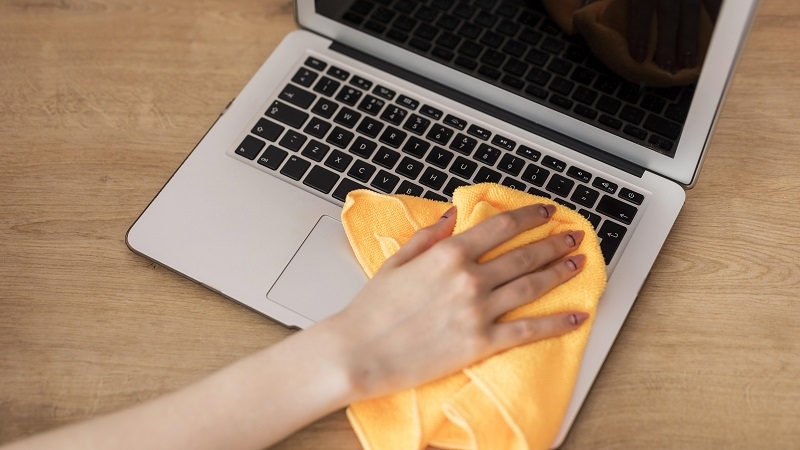 - Dùng khăn mềm, khô để lau sạch nước trên bề mặt máy, bàn phím và các khe hở.