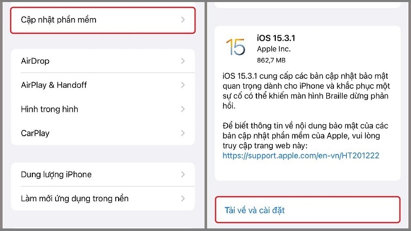 Vào Cài đặt → Cài đặt chung → Cập nhật phần mềm. Apple thường xuyên vá các lỗi kết nối qua bản cập nhật. Đảm bảo pin trên 50% và kết nối ổn định (dùng WiFi hoặc iTunes) trước khi cập nhật.