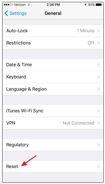 Bước 2: Kéo xuống dưới cùng và nhấn vào mục Reset (Thiết lập lại).