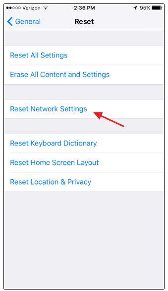Tiếp theo, hãy nhấn tiếp vào tùy chọn Reset Network Settings (Thiết lập lại các cài đặt mạng) để khôi phục các cài đặt về mạng của thiết bị.