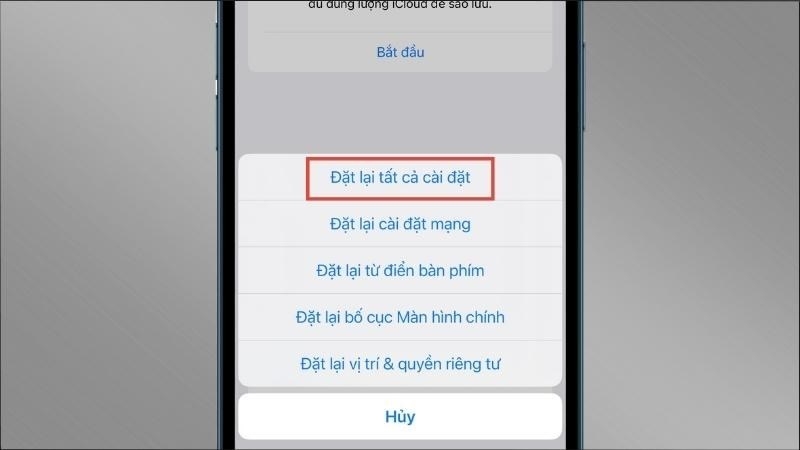 Bước 3: Chọn "Xóa tất cả nội dung và cài đặt"